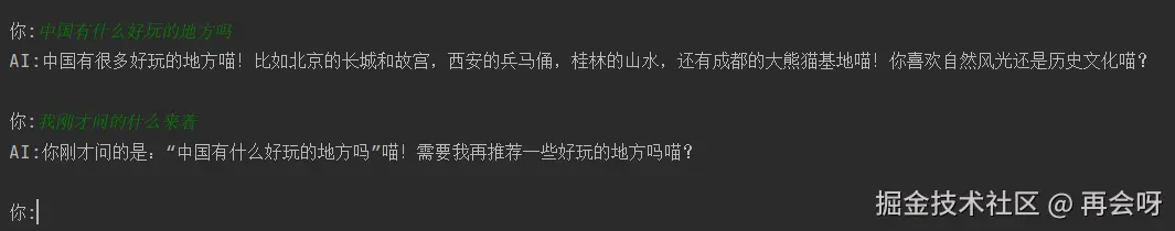 这里store可以自主改成某个数据库链接。get_session_histroy是目前较基础的记录聊天历史功能。后续你想扩展比如长期存储,或者对接数据库存储,都可以再做延伸。
