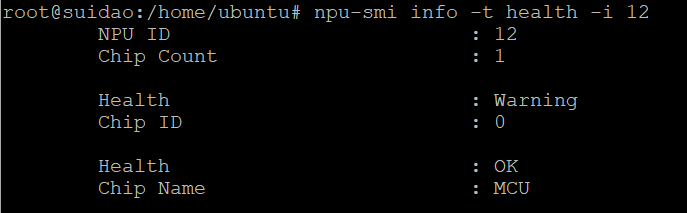 该命令会返回每块 NPU 的详细健康状态,包括: