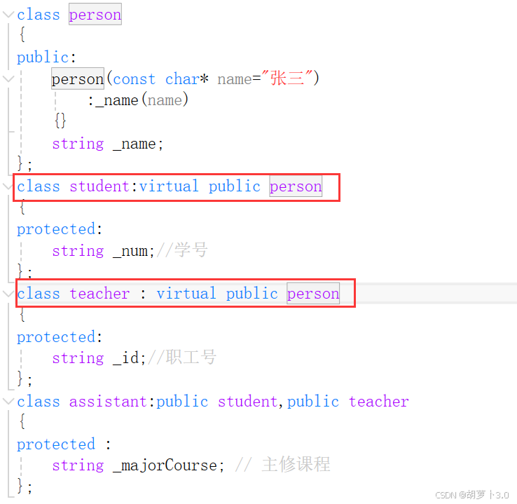 祖师爷想出了虚继承去解决数据冗余的问题,虚继承的关键字是------virtual: