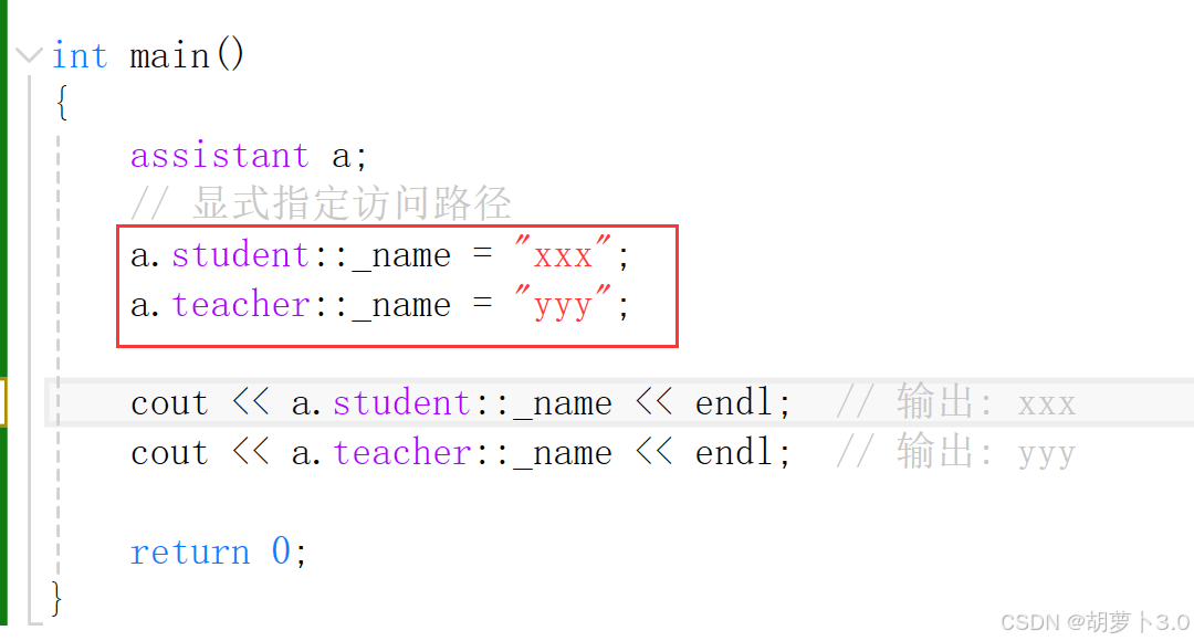 ok,那对于这种情况,我们只能显示指定访问哪个基类成员,编译器就知道该访问哪个_name了