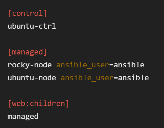 主机清单是 Ansible 识别 "被管理节点" 的配置文件,用于定义需要管理的主机及相关连接信息,是 Ansible 执行任务时定位目标节点的 "地址簿",确保控制节点知道对哪些主机执行操作