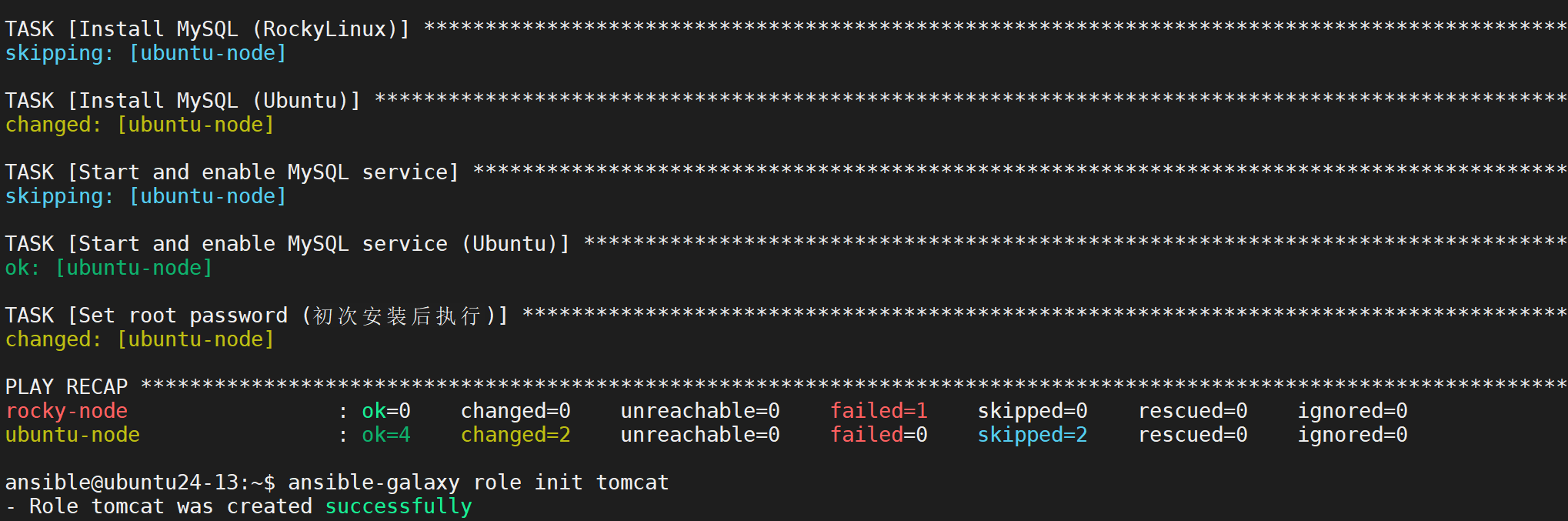 tasks串联多步骤操作,结合when(条件)、loop(循环)等语法,可应对 "按环境差异部署""批量处理动态数据" 等复杂场景。 - 幂等性保障:Playbook 中任务默认支持幂等性(多次执行结果一致),避免重复操作导致的资源浪费或错误(如重复安装软件不会重复执行)。