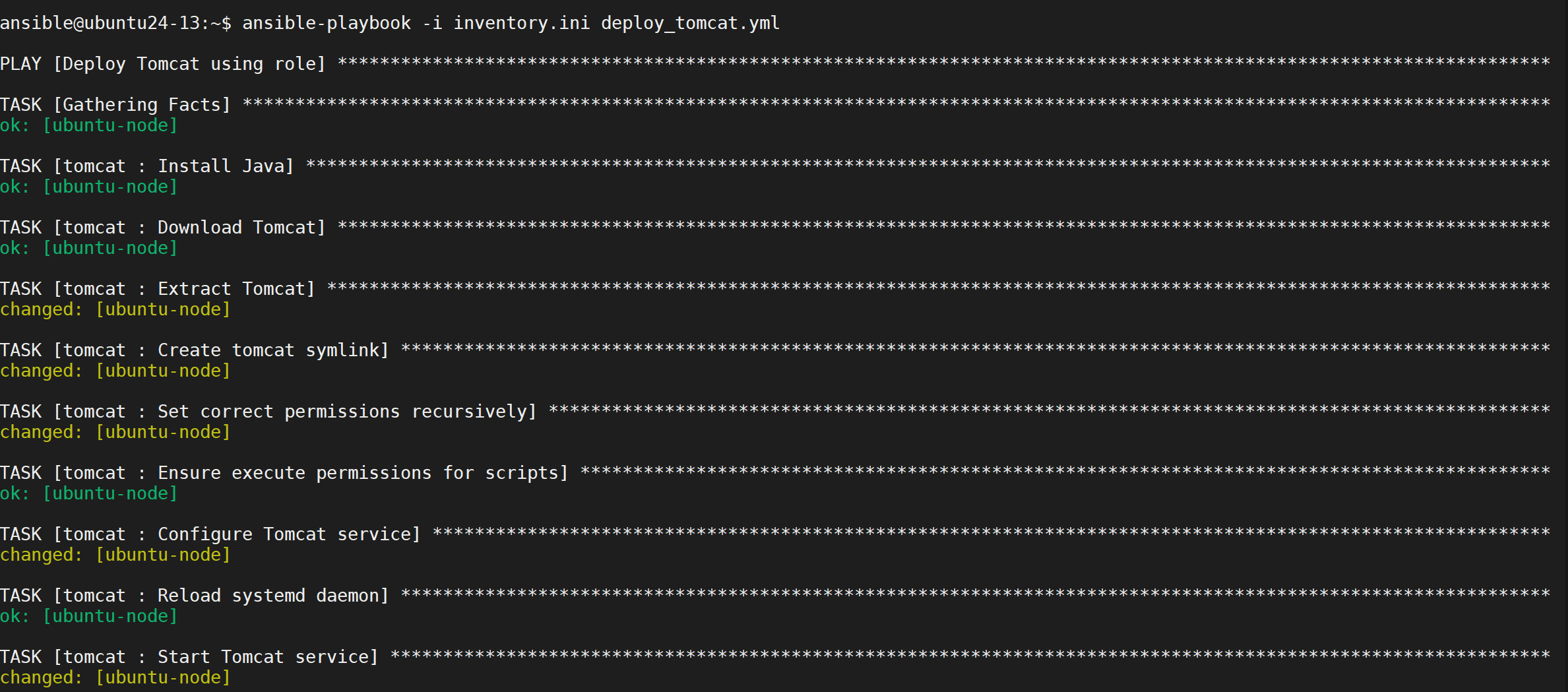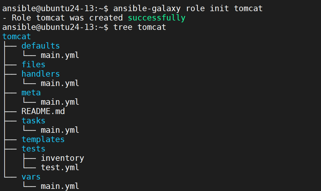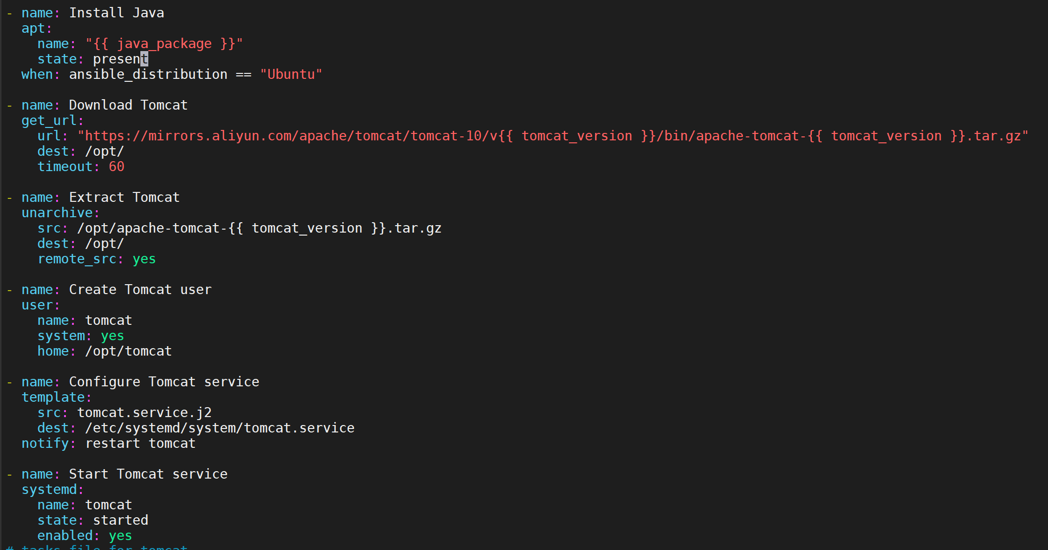 Role 实践:创建 1 个用于部署tomcat的 Role,包含配置文件、启动脚本等,并用它完成 1 台主机的tomcat部署。