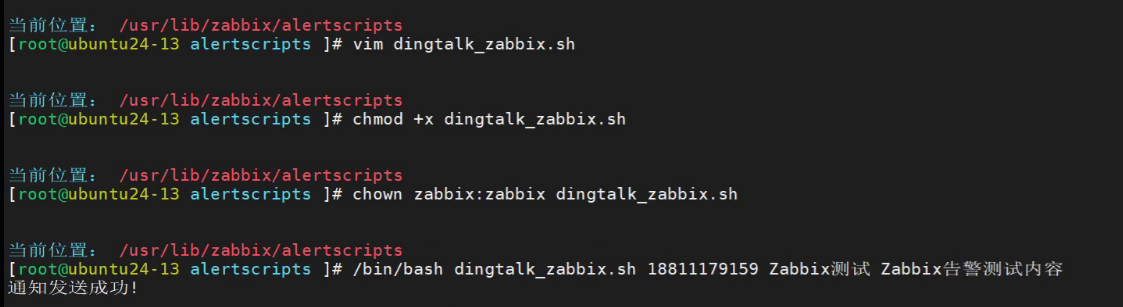 告警实践:配置 Zabbix 的钉钉告警,当触发器触发时,能收到对应的告警消息。