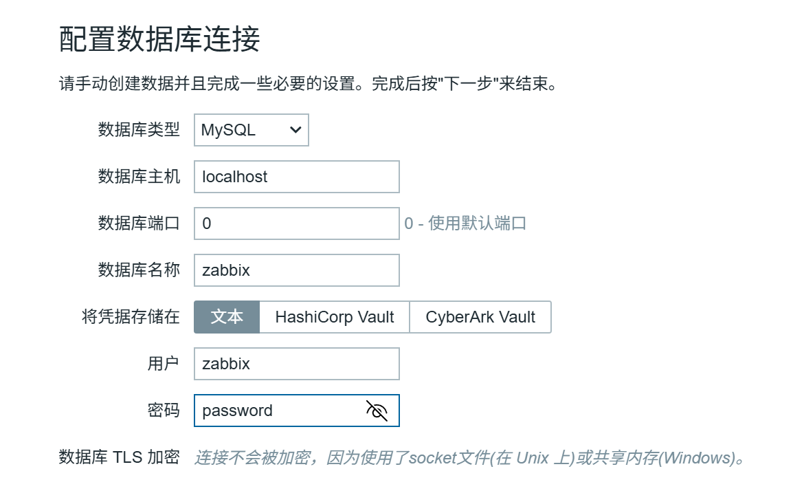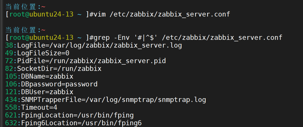 vim /etc/zabbix/zabbix_server.conf DBPassword=password