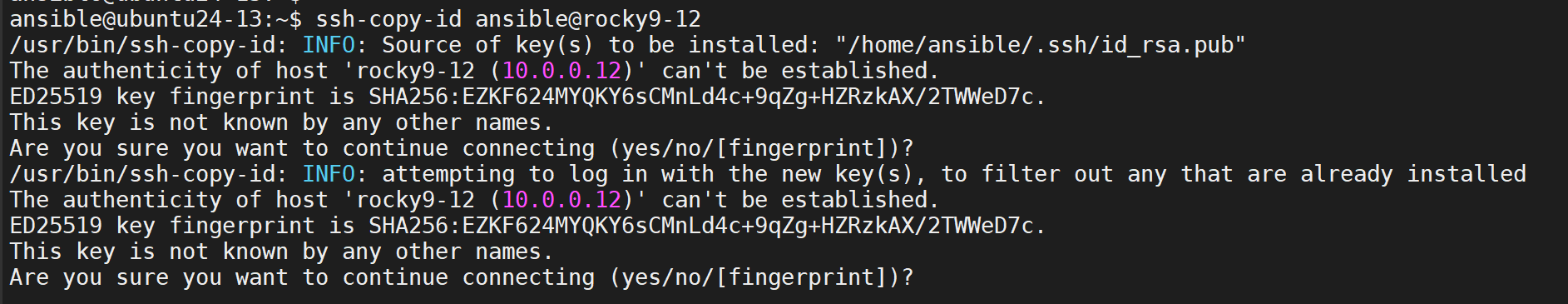 完成 1 台控制节点、2 台被管理节点的环境配置,确保控制节点能免密登录被管理节点。