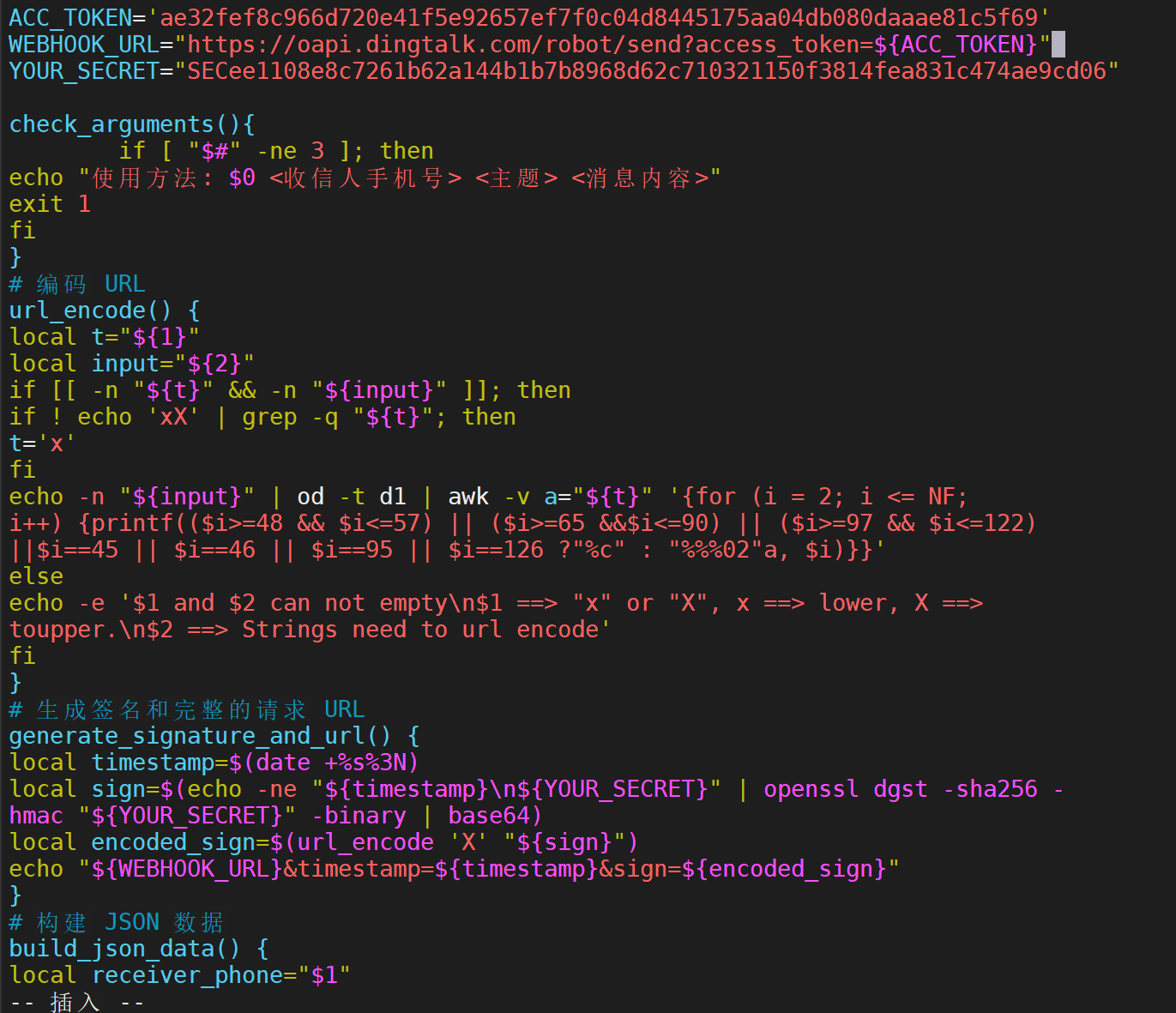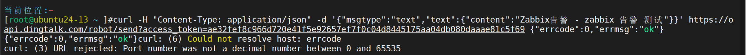 先用Webhook在虚拟机中进行测试(两个花括号中间换成机器人的webhook码)