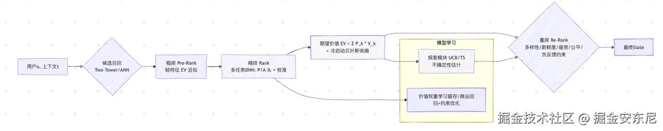 这意味着系统不仅在追求"分数最高",还要兼顾"内容不重复""不过度打扰""保持新鲜"。