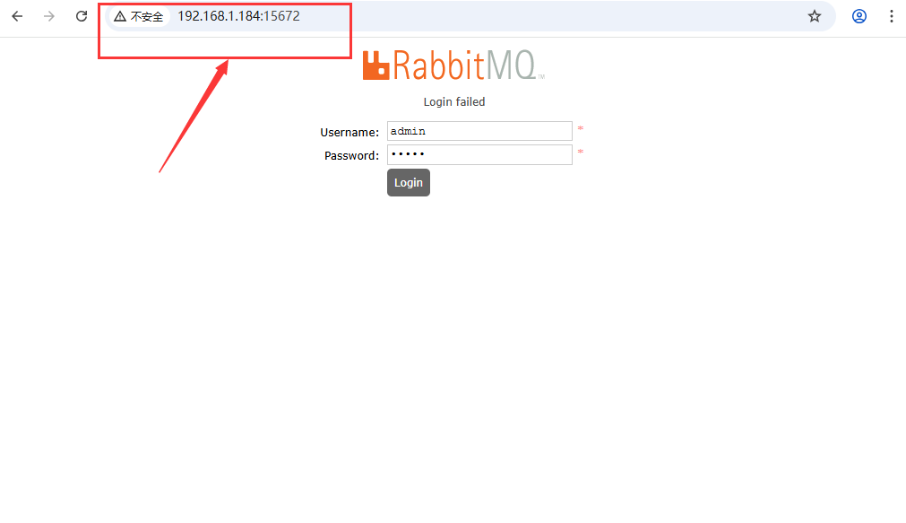 11,在外网电脑上,打开浏览器,在地址栏输入从路由侠生成的外网地址,就可以看到内网部署的 RabbitMQ 界面了。