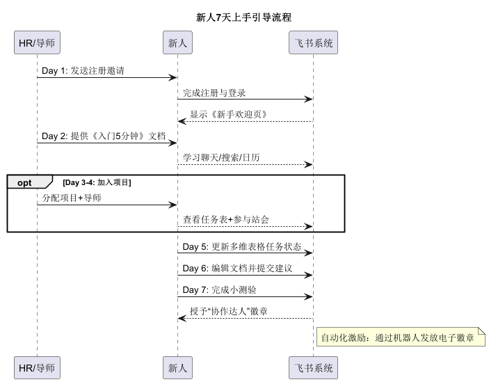 | Day 7 | 完成《飞书使用小测验》并获得"协作达人"徽章 | 激励机制 |