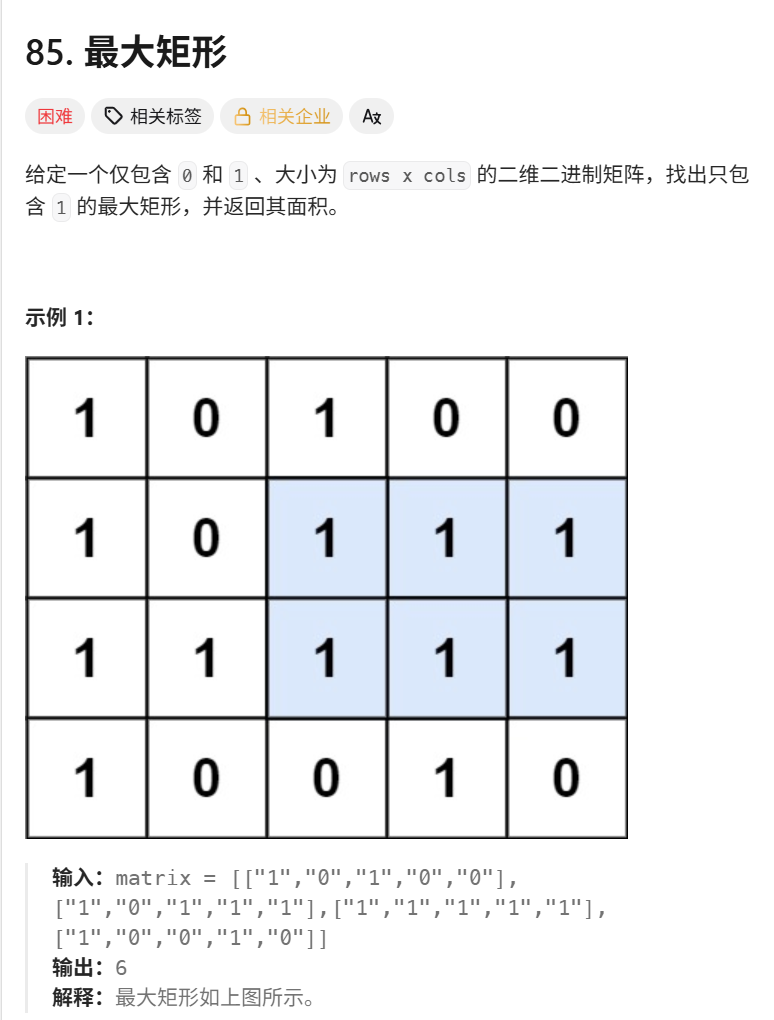 举个例子: matrix = [ ["1","0","1","0","0"], ["1","0","1","1","1"], <-- 假设我们处理到这一行 (i=1) ["1","1","1","1","1"], ["1","0","0","1","0"] ]
