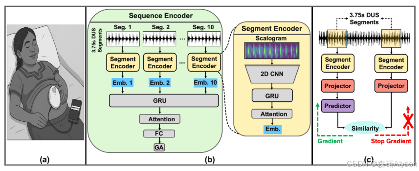 本文研究的是如何在资源匮乏地区,利用低成本的1D多普勒超声设备和自监督学习,准确估算胎龄。