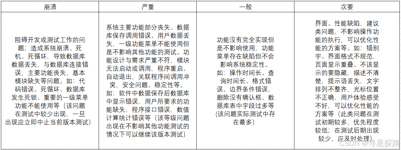 同样的,bug级别⼀般分为:崩溃、严重、一般、次要