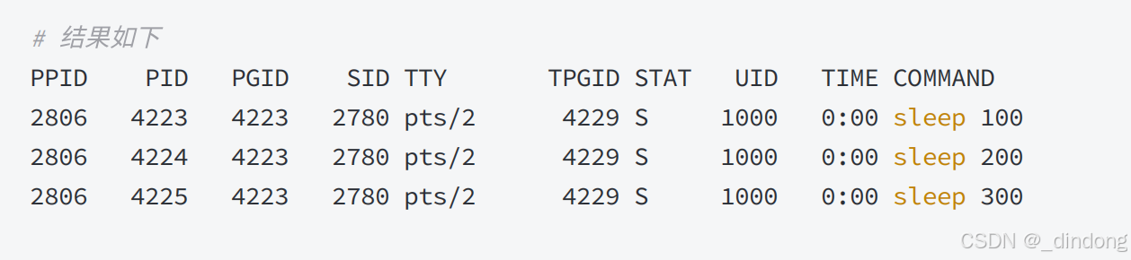 从上述结果来看3个进程对应的PGID相同, 即属于同⼀个进程组。