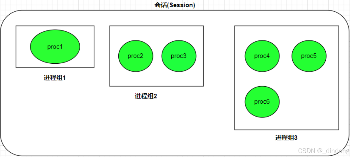 刚刚我们谈到了进程组的概念, 那么会话⼜是什么呢? 会话其实和进程组息息相关, 会话 可以看成是 ⼀个或多个进程组的集合 , ⼀个会话可以包含多个进程组。每⼀个会话也有⼀个会话ID(SID)