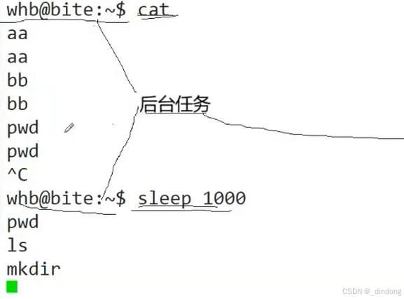 我们在xshell中输入命令后,命令行执行的命令变成前台进程,bash进程自动变成后台进程,那么bash就无法再从标准输入中获取数据了。所以这也可以解释,为什么执行sleep命令后,在sleep期间输入的其他命令都无效了,因为bash无法从标准输入流中获取这些数据,自然就无法解析了。
