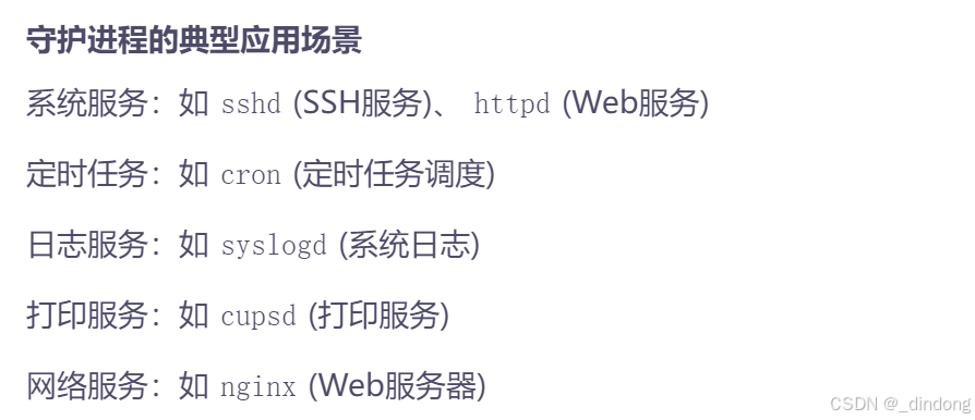守护进程是Linux/Unix系统中一种特殊的后台服务进程 ,它独立于控制终端并且周期性地执行某种任务或等待处理某些事件的发生。守护进程通常在系统启动时运行,在系统关闭时终止。