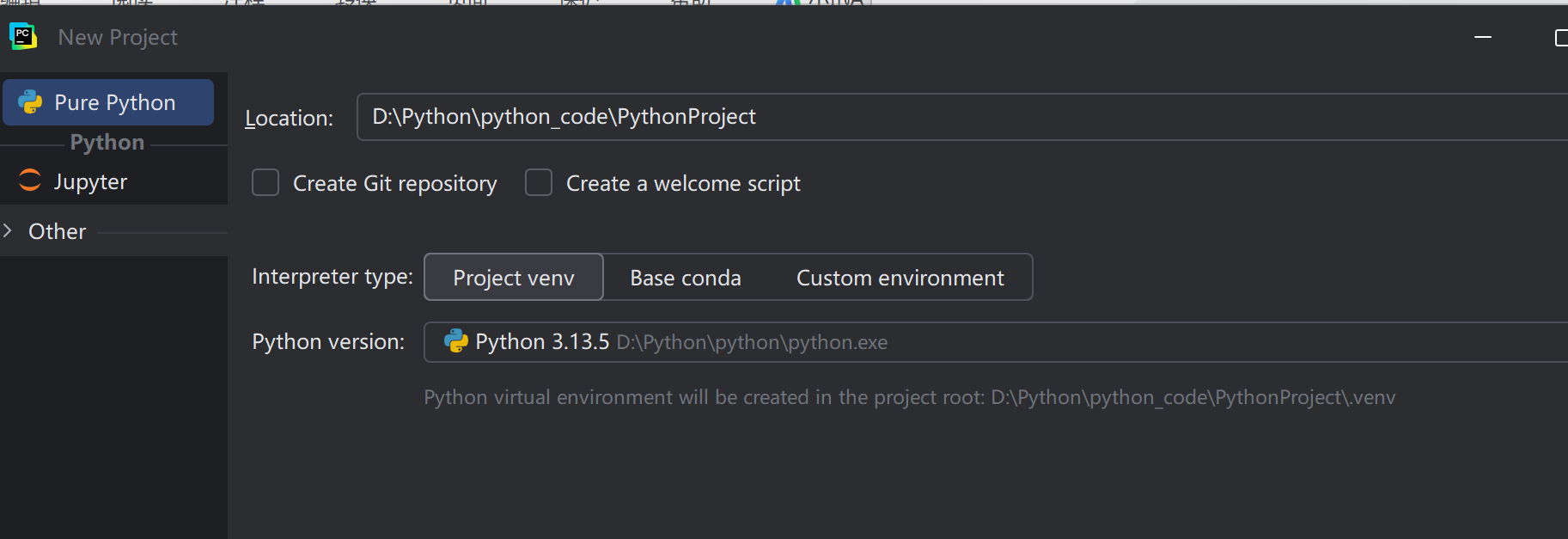 注意, 一般情况下, PyCharm 能够自动识别出 Python 解释器的位置.