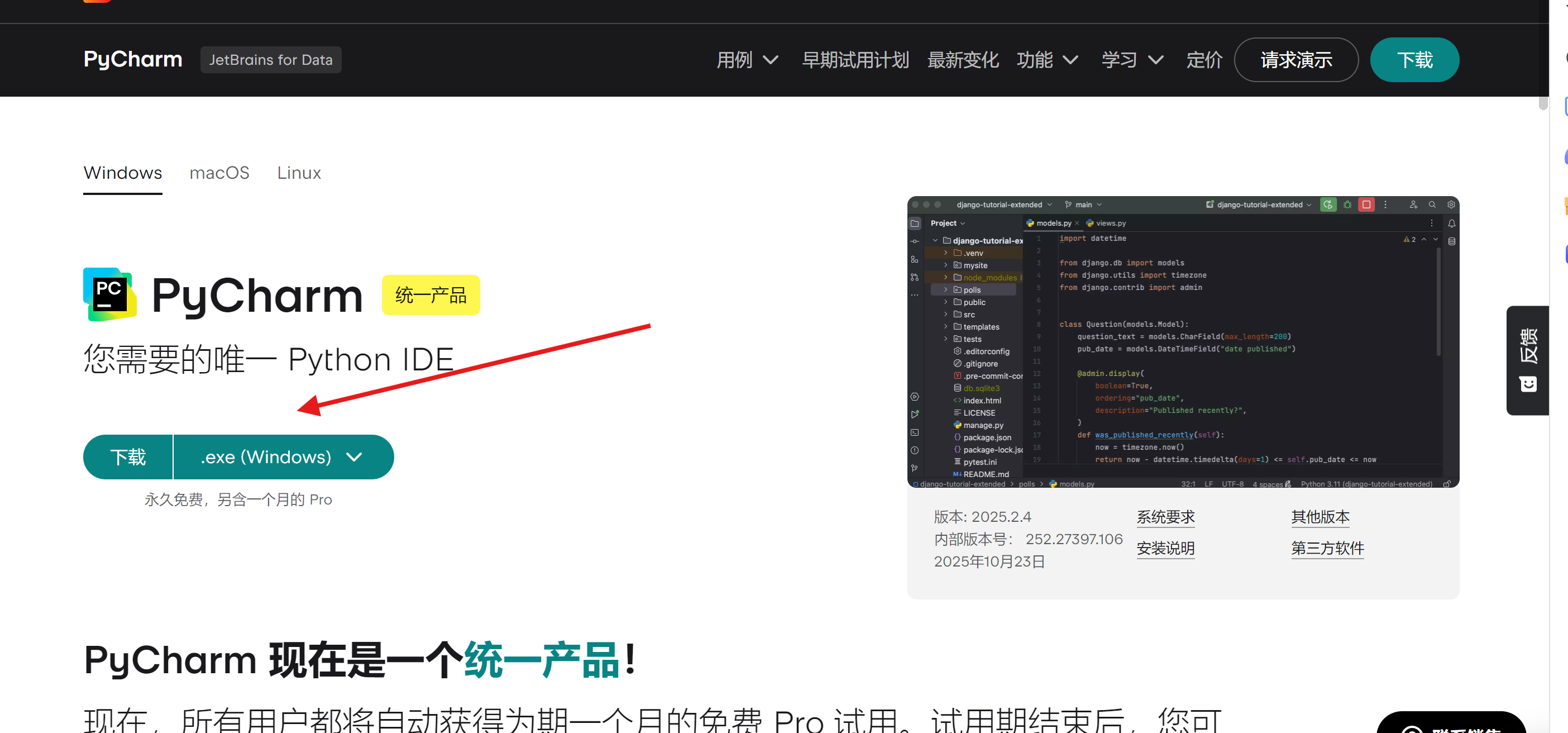 https://www.jetbrains.com.cn/pycharm/download/?section=windows