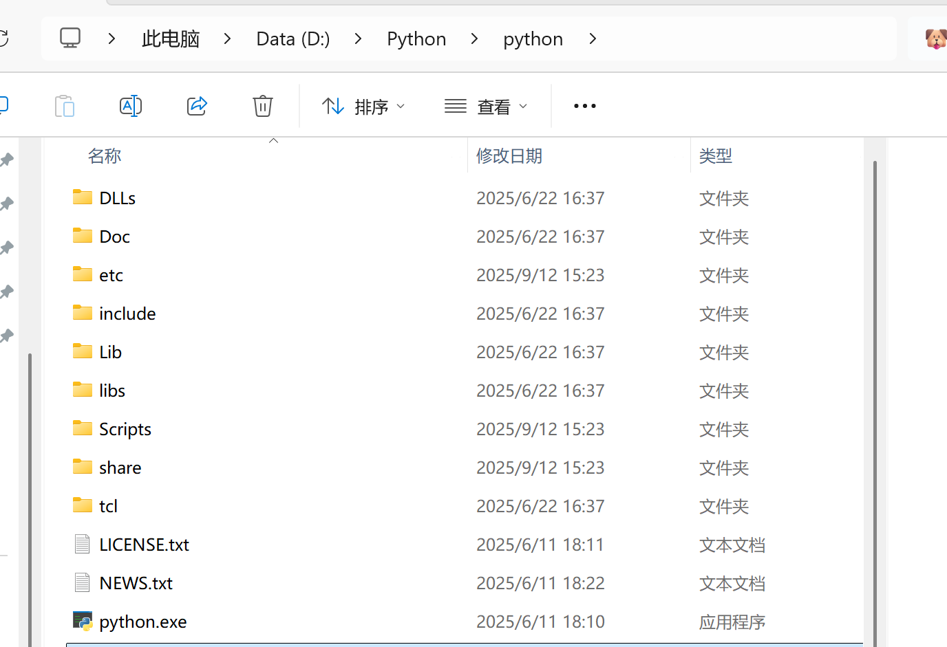 其中最关键的就是这个 python.exe. 后续运行 Python 程序, 全靠这个 python.exe