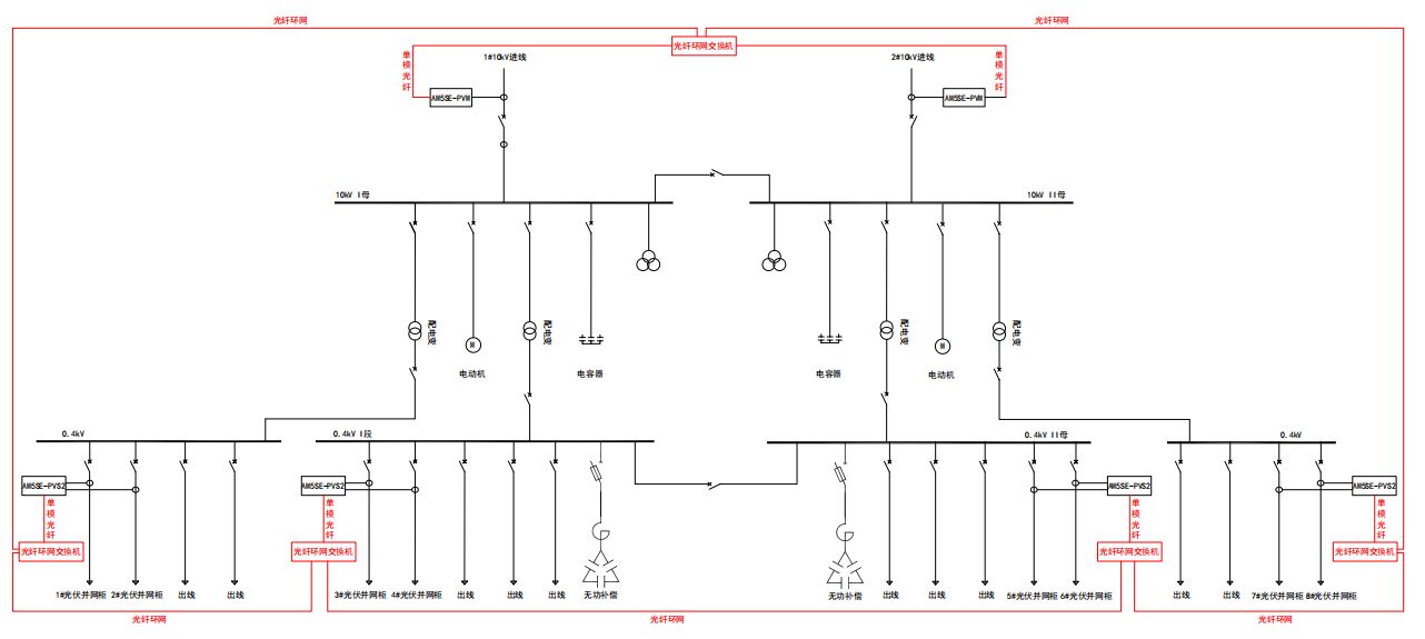 大型工业园区、分布式光储电站 ,逆流监测点和并网柜可能隔了几公里甚至几十公里,这时候就需要AM5SE-PV 系列主从机方案,通过光纤连接实现远程控制。