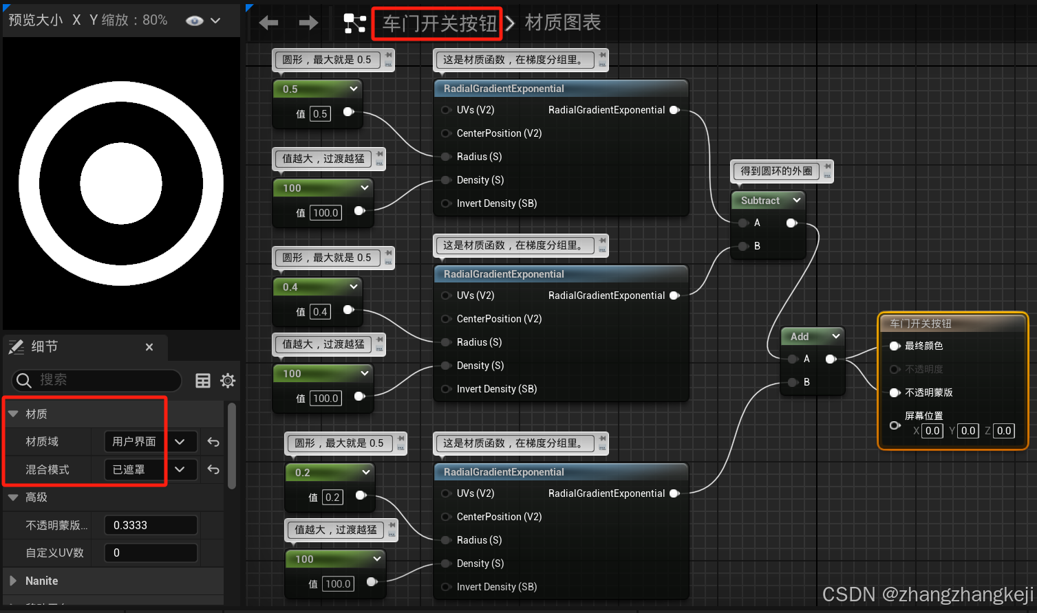 (51)材质函数 RadialGradientExponential 径向渐变 :