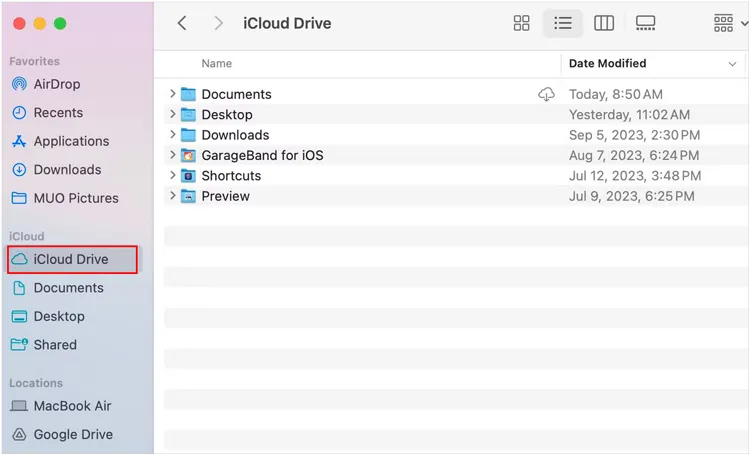 在 Mac 上,只需将要传输的文件拖到" iCloud Drive "文件夹(可通过 Finder 侧边栏访问)即可。文件将被上传到 Apple 服务器。所需时间取决于文件大小和您的网络连接速度。