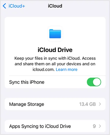 确保您的 Mac 和 iPhone 上均已启用 iCloud Drive:在"系统设置 "或"偏好设置 ">" Apple ID ">" iCloud "中,以及在 iPhone 上:打开**"设置"** 应用 > 点击" [您的姓名] ">" iCloud ">" iCloud Drive "> 启用"同步此 iPhone "。