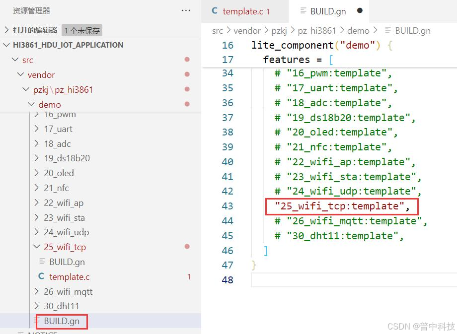 将前面章节创建好的工程模板, 复制一份, 重命名为 25_wifi_tcp, 如下所示: