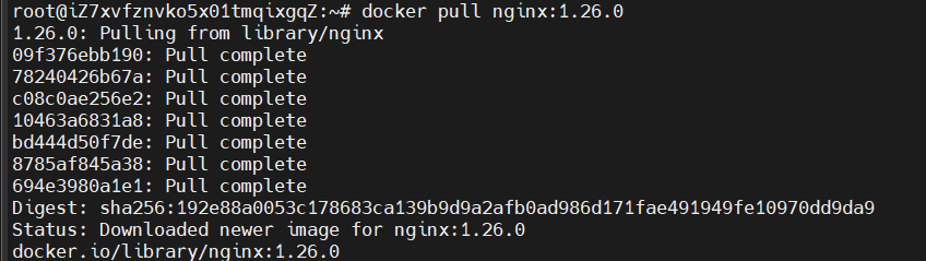 本地原先有本地已有 nginx:latest 镜像,我们现在从docker仓库中拉一个:nginx:1.26.0 镜像,过程如下: