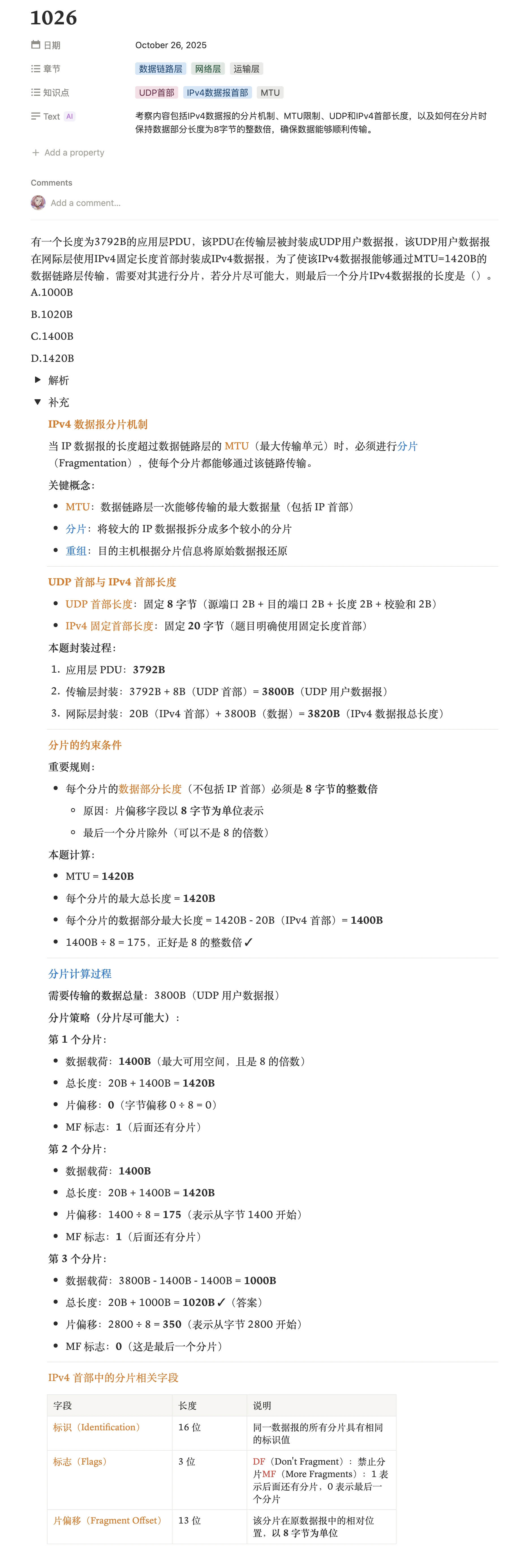 【复习】计网每日一题1019---分片,MF,片偏移-CSDN博客