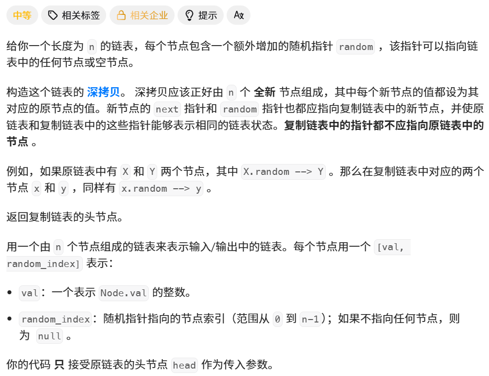 题目 :138. 随机链表的复制 - 力扣(LeetCode)