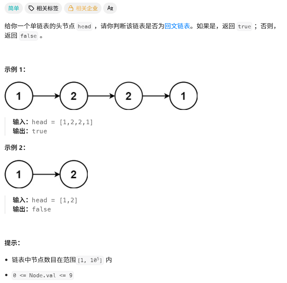 1、回文链表 hot