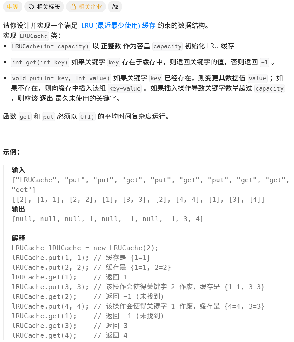 题目 :146. LRU 缓存 - 力扣(LeetCode)