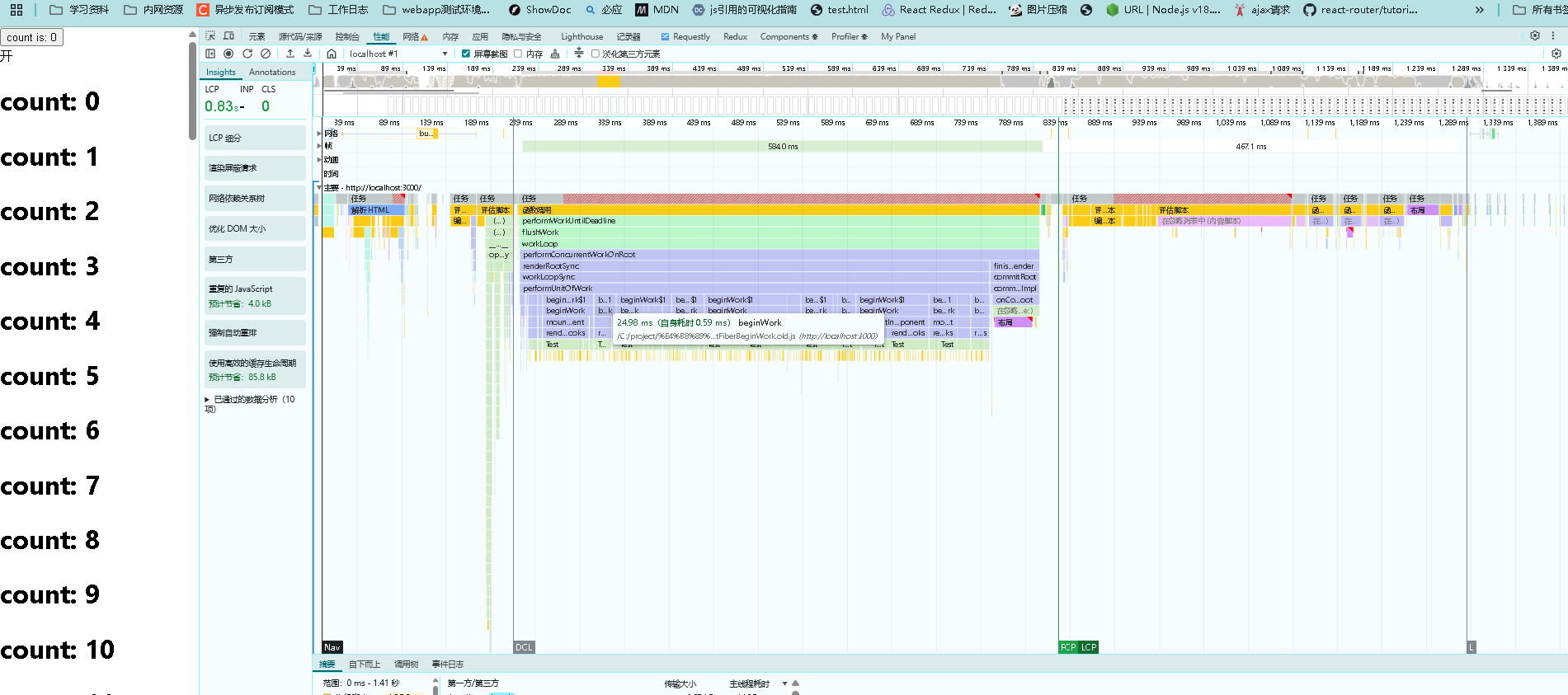 可以看到React的中断-重启分片的设计能够降低原本同步循环渲染带来的卡顿问题,分片的设计也使得React能够交换不同优先级任务间的执行顺寻。不过这也为React引入了另一个问题,并发渲染导致的同一页面不同组件在同一帧读取到不同store值的问题(react提供的解决方式useSyncExternalStore)。