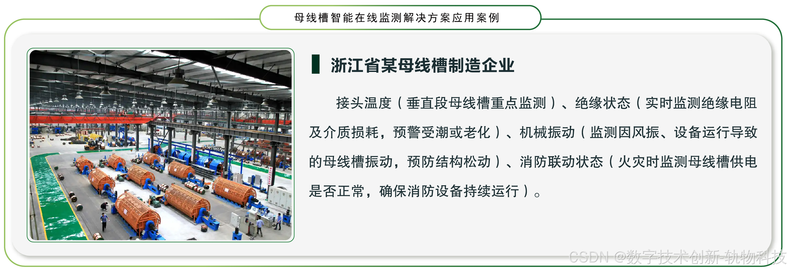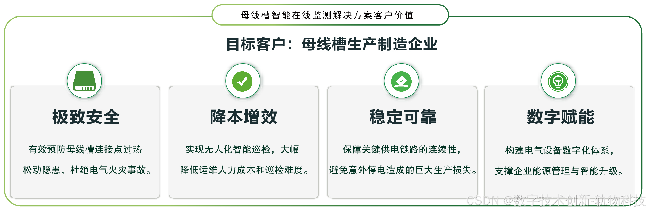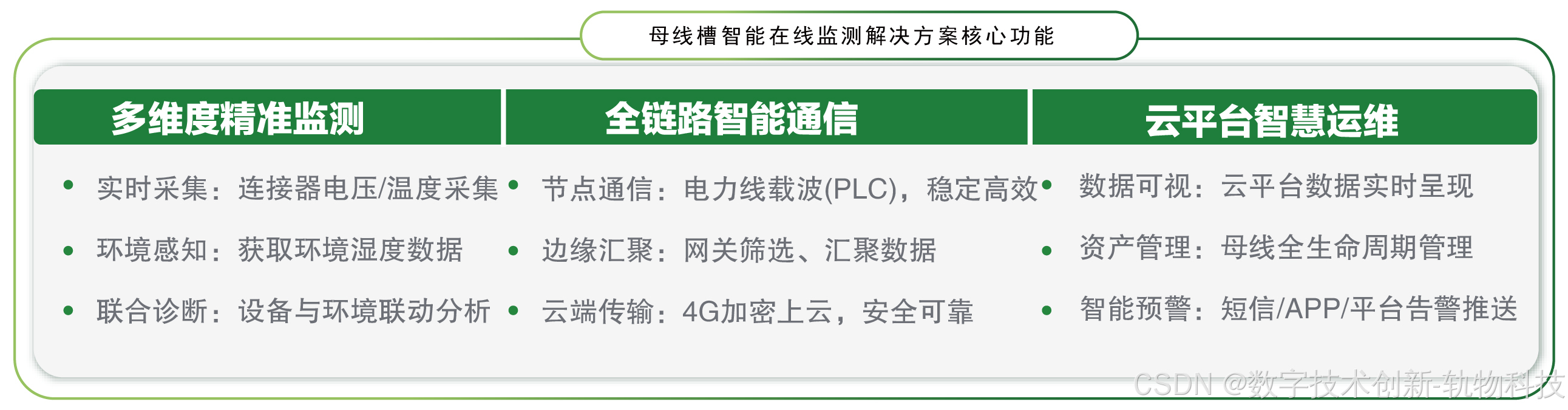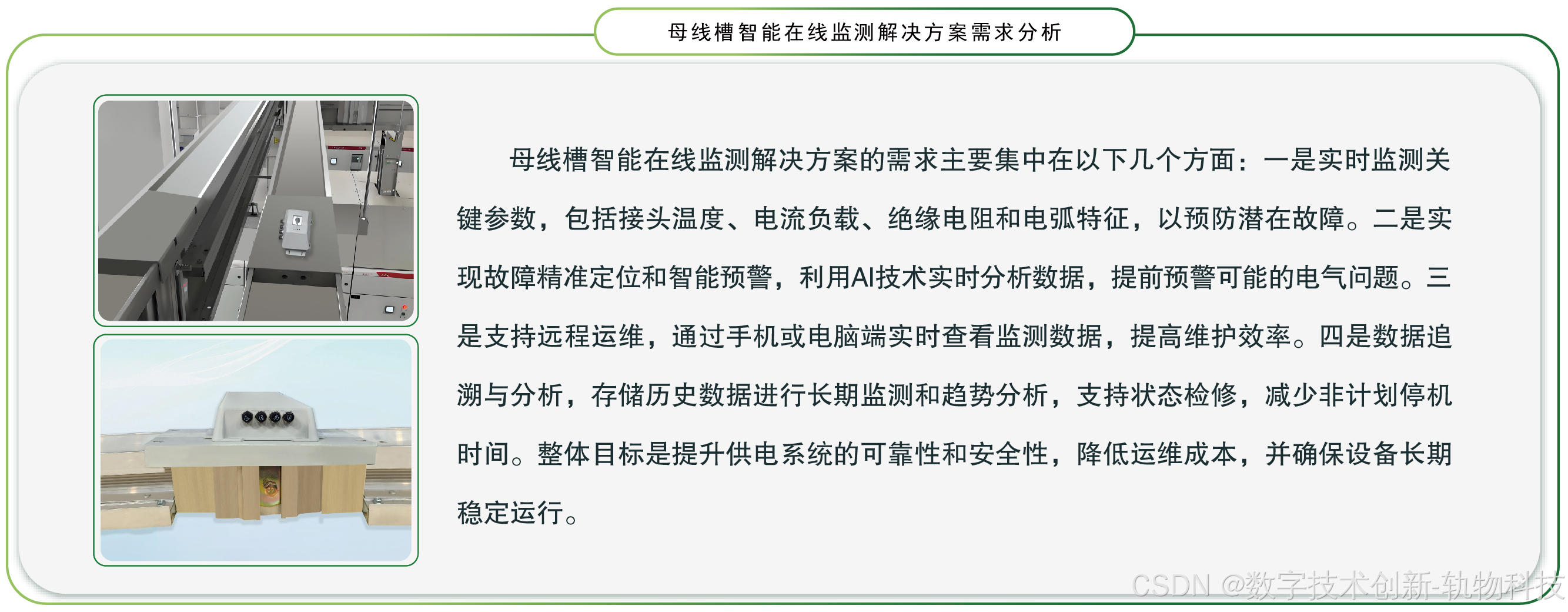 轨物科技基于10余年电力物联网技术积累,推出母线槽智能在线监测解决方案 ,以"端-边-云"协同架构破解行业痛点,实现安全零事故、运维降本60%、供电可靠性99.99% 的三重突破。