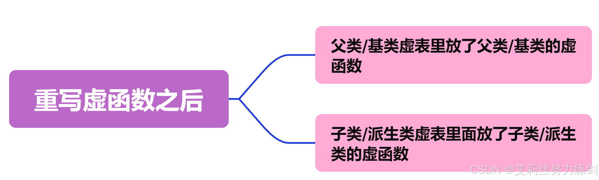 不要光答虚表两个字------这只是一层,说全一点:父类有虚函数后、有虚表,子类 也有虚表。如果有多个子类,每个子类都各自有虚表。
