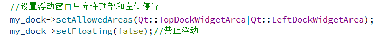 Qt::LeftDockWidgetArea(停靠在左侧)Qt::RightDockWidgetArea(停靠在右侧)Qt::TopDockWidgetArea(停靠在顶部)Qt::BottomDockWidgetArea(停靠在底部)Qt::AllDockWidgetAreas(以上四个位置均可停靠)具体如下所示: