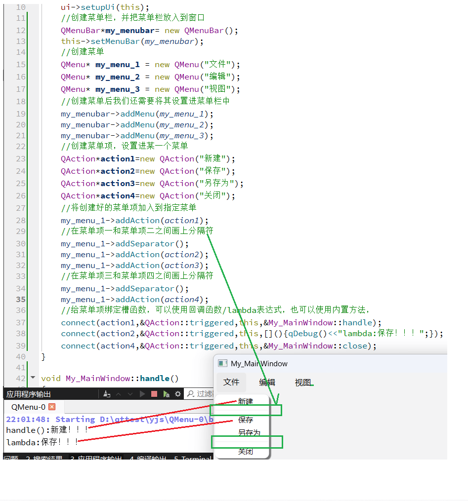 connect(action2,&QAction::triggered,this,[](){qDebug()<<"lambda:保存!!!";});