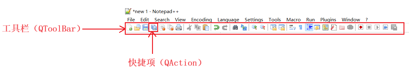 总之,Qt 的工具栏是提升用户操作效率的重要部件,尤其适合放置高频使用的功能,其灵活的停靠特性也让界面设计更具适应性。如下图为⼯具栏的⽰意图: