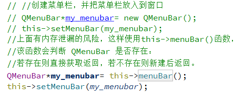QMenuBar*my_menubar1=this->menuBar();