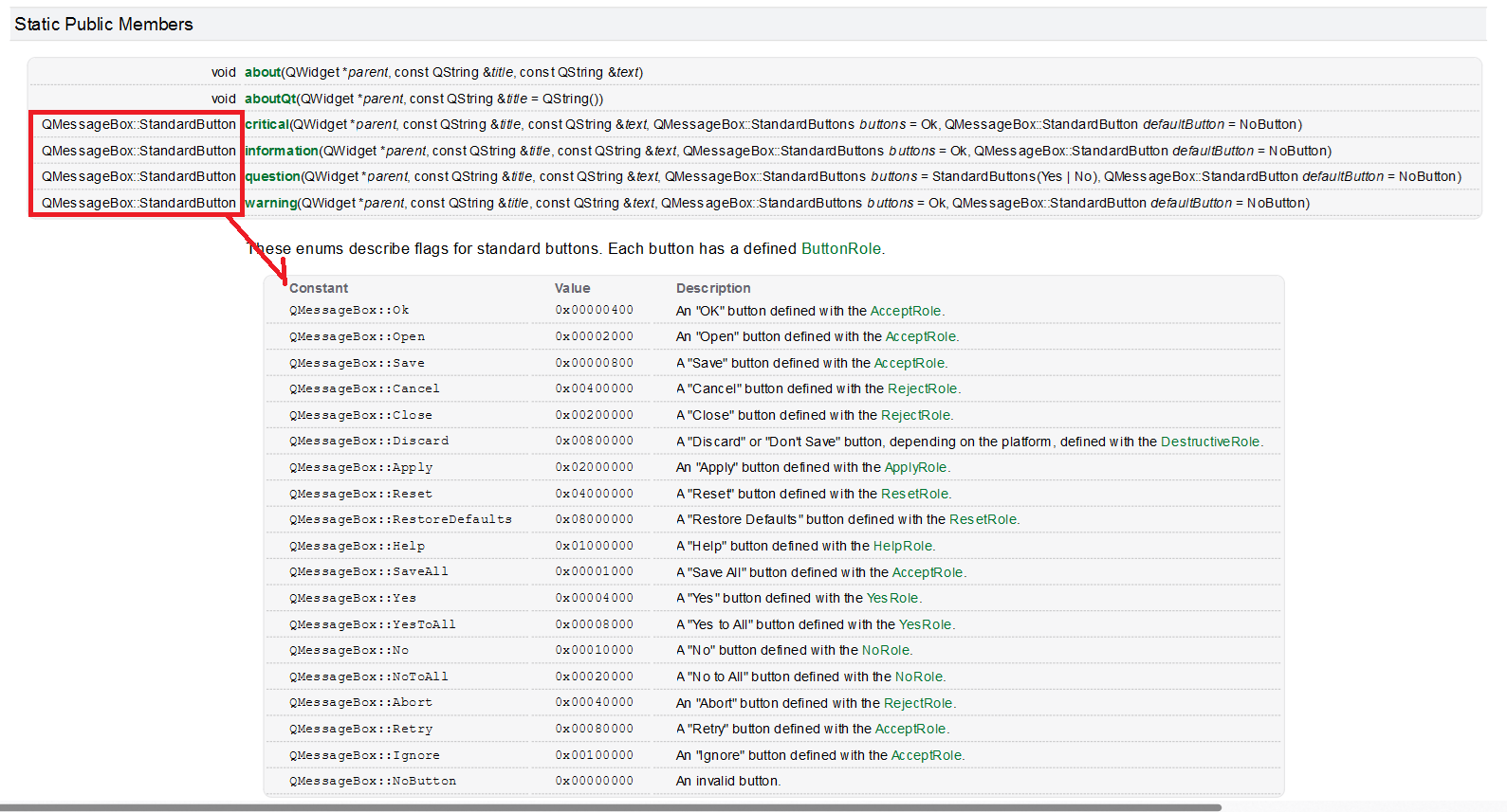 my_mb->setStandardButtons(QMessageBox::Ok|QMessageBox::Cancel|QMessageBox::Close);