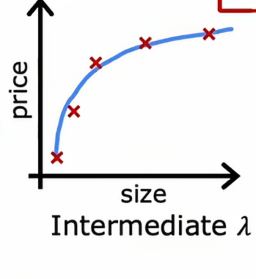 所以如果我们在决定使用什么样的λ作为正则化参数,交叉验证提供了一种方式,让我们看看怎么做,需要提醒的是,我们现在正在解决的问题是,如果我们在拟合一个四次多项式,并且我们正在使用正则化,这将类似与我们使用交叉验证选择多项式阶数d的程序