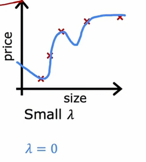 其实就相当于没有正则化参数,跟之前的图没有任何区别,它表现出的时高方差和过拟合