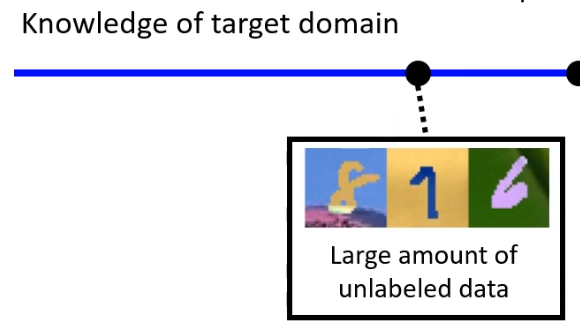 另一种情况是,在target domain上有大量的资料,但是没有标注。例如有很多有颜色的数字图片,但是没有标注。