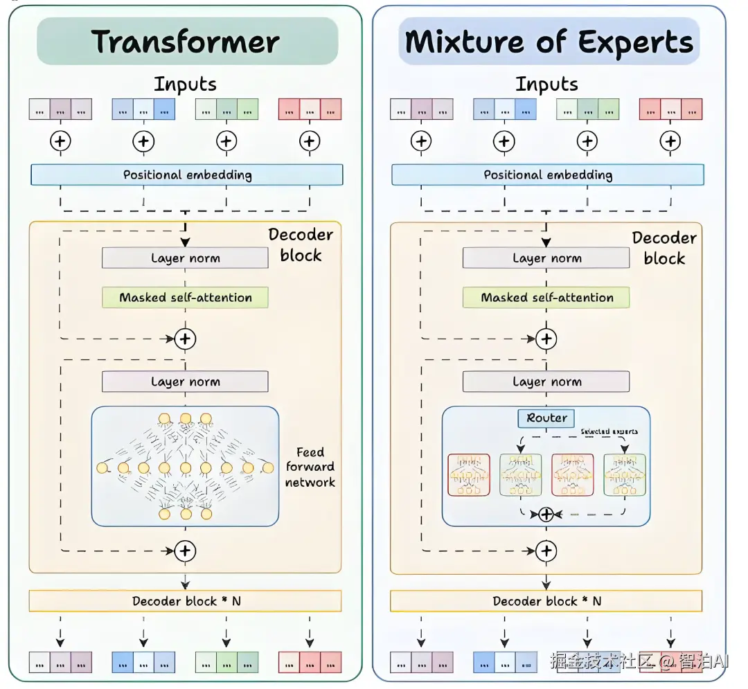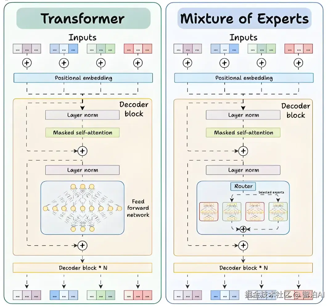 MoE对解码器结构进行了重构,核心改进体现在以下方面: