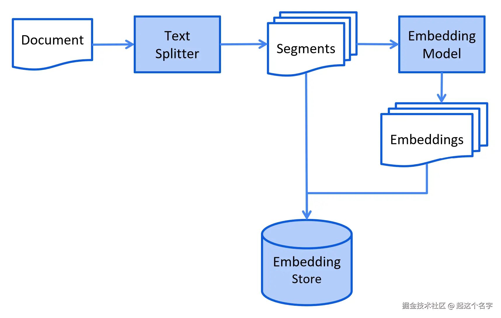 - 把文本片段对应的向量存储到向量数据库(Embedding Store)中