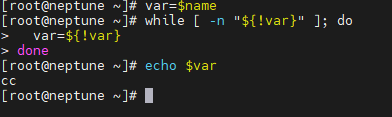 while [ -n "${!var}" ]; do