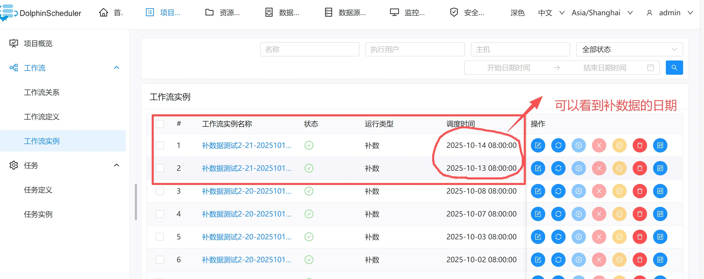 最近使用 Apache DolphinScheduler 调度任务,不可避免地使用到【补数据】功能,经过不断尝试,终于成功运行了【补数据】功能,以此帖记录。
