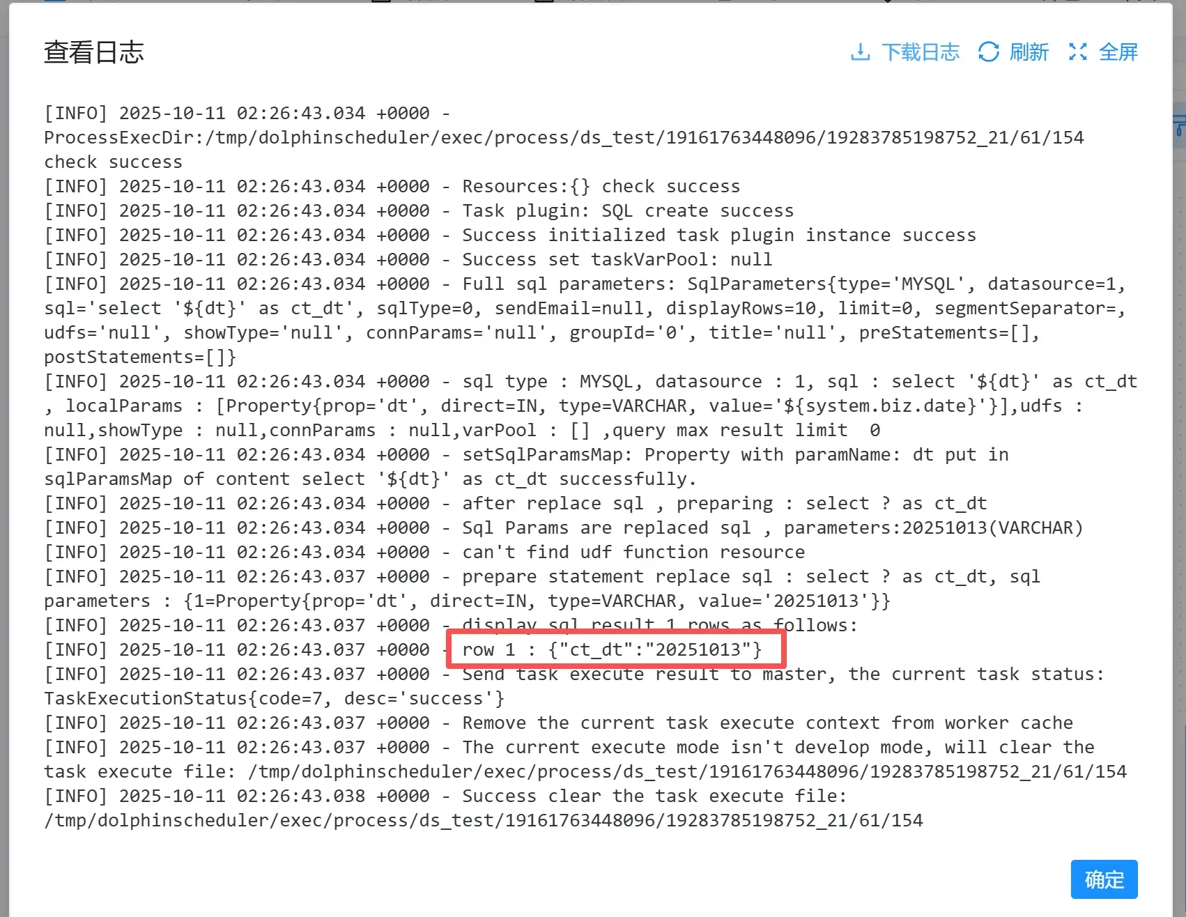 结果显示,SQL 运行结果为补数据选择的日期,补数据功能正常可用。